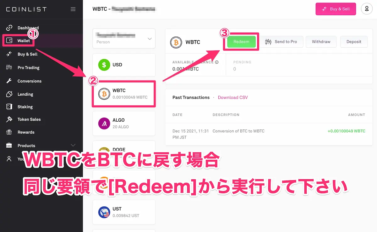 まずはじめに、CoinListのウォレットは[ 通常 / Pro ]とで、別々に管理されています。